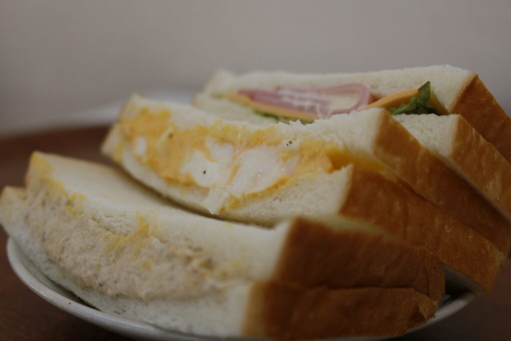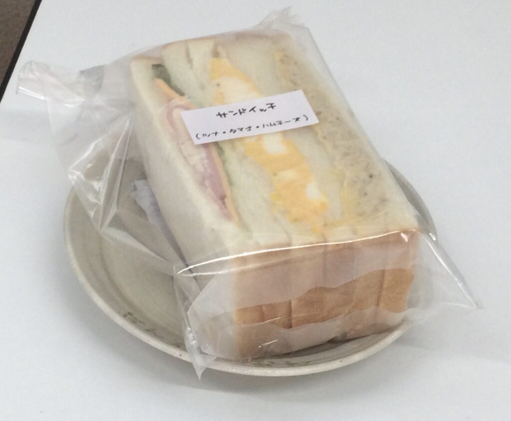 風邪には充分な睡眠とバランスのよい食事が不可欠。ということで今日紹介する商品はサンドイッチ¥350です。だんでらいおんのサンドイッチは、ツナ(タマネギ、マヨネーズ和え)、卵、ハムチーズ(ロースハム、チェダーチーズ、レタス添え)の3種類で栄養たっぷり。今日のランチにいかがですか。